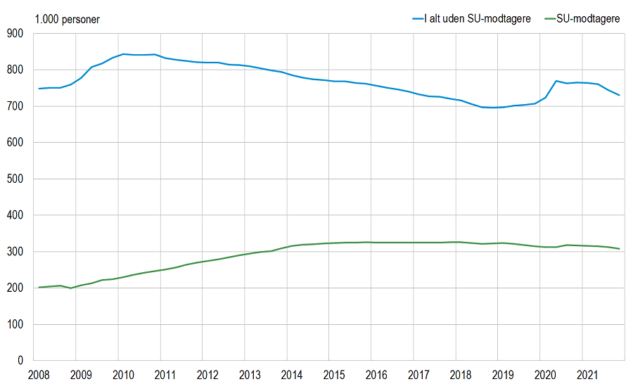 | Offentligt forsørgede (uden SU-modtagere) | 750.560 | 2021 |
