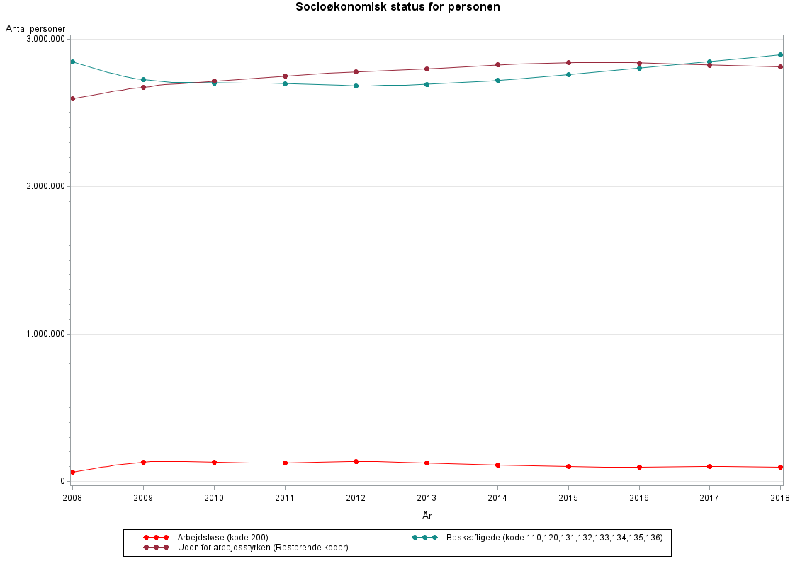 Arbejdsløse (SOC_STATUS_KODE=200): Datakilden til oplysningerne er statistikken for offentligt forsørgede. Gruppen af arbejdsløse består af personer, der er bruttoledige. Bruttoledige som samtidigt har arbejde, dvs. personer i løntilskudsjob, opgøres som beskæftigede, idet beskæftigelse trumfer ledighed.