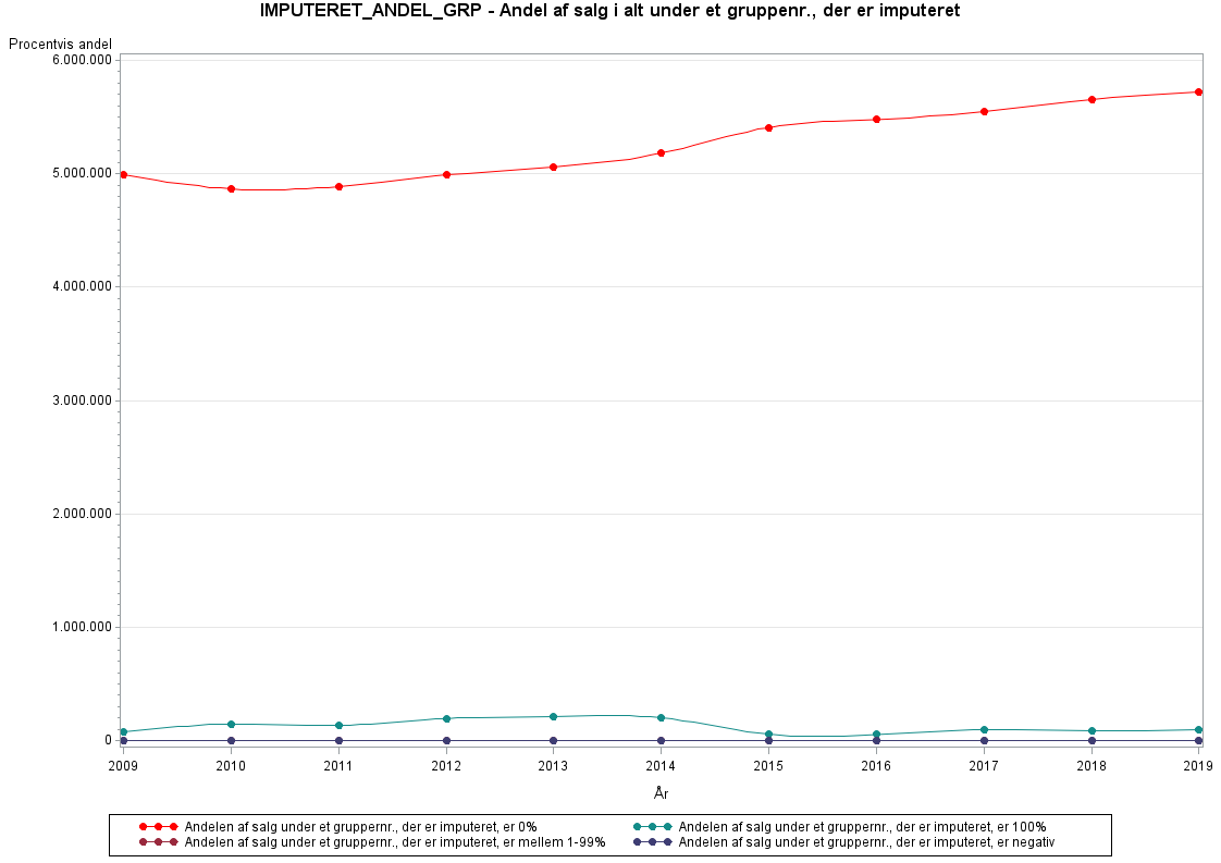 For hvert CVR-nummer, der er i gruppen, angives det, hvor stor en andel af salg_ialt, der er imputeret. Gruppenummeret dækker over de firmaer eller det firma, som momsen er beregnet for.Detaljeret beskrivelse