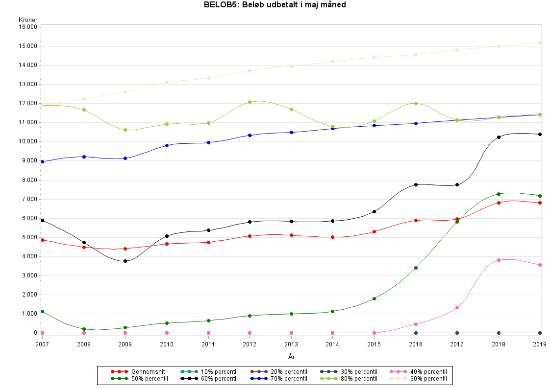 Udbetalt beløb i maj måned - beregnet ud fra hvilken måned, den sidste dag i den periode, som udbetalingen dækker, lå i.Beløbet kan være negativt i forbindelse med efterreguleringer eller ved ydelser, der er bevilget med tilbagebetalingspligt, eller hvor ydelsen skal tilbagebetales, fx fordi modtageren har givet forkerte oplysninger til kommunen. De sker ret ofte, at der udbetales et beløb, der dækker en længere periode. Især gælder det for løntilskudsordningerne, hvor beløbet udbetales til en arbejdsgiver.