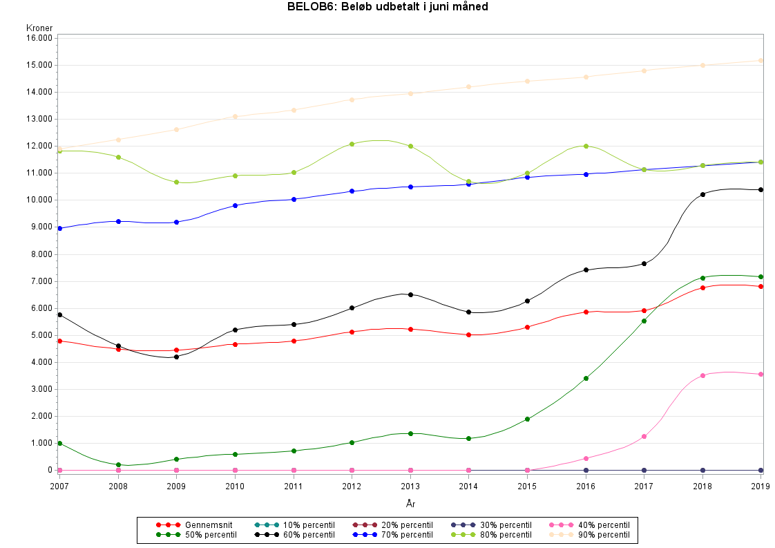 Udbetalt beløb i juni måned - beregnet ud fra hvilken måned, den sidste dag i den periode, som udbetalingen dækker, lå i.Beløbet kan være negativt i forbindelse med efterreguleringer eller ved ydelser, der er bevilget med tilbagebetalingspligt, eller hvor ydelsen skal tilbagebetales, fx fordi modtageren har givet forkerte oplysninger til kommunen. De sker ret ofte, at der udbetales et beløb, der dækker en længere periode. Især gælder det for løntilskudsordningerne, hvor beløbet udbetales til en arbejdsgiver.