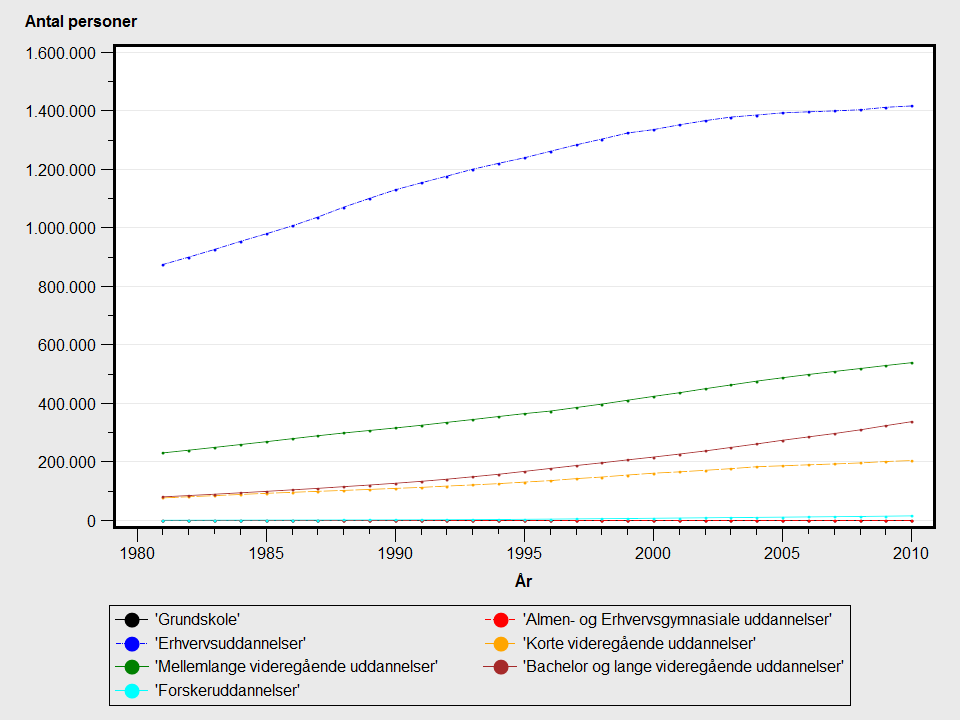 Til forskningsbrug dannes der én gang årligt et datasæt med befolkningens højeste fuldførte erhvervskompetencegivende uddannelse. Befolkningen er opgjort pr. 1. januar og deres uddannelsesstatus er opgjort 1. oktober året før, hvilket er de seneste tilgængelige uddannelsesoplysninger.