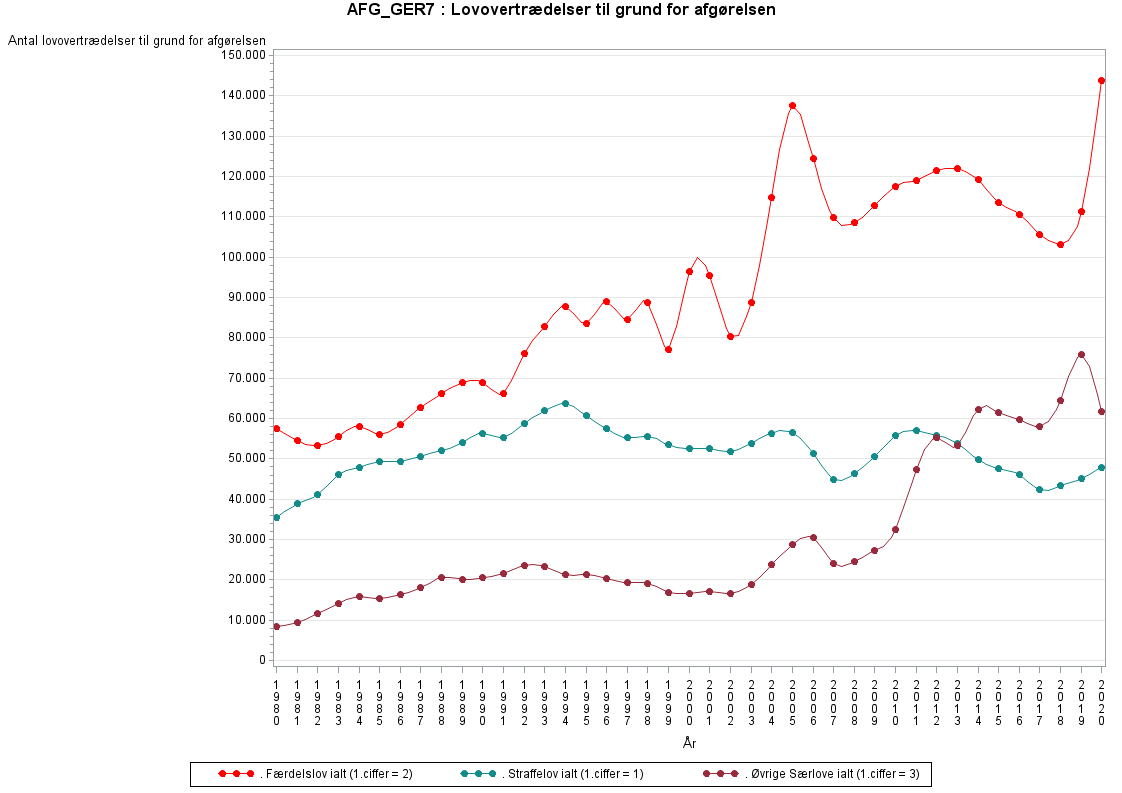 I tilfælde af at flere lovovertrædelser er omfattet af den samme afgørelse (se AFG_KONFSANT (antal afsluttede bisigtelser), vil gerningskoden være den lovovertrædelse, der anses for den alvorligste.