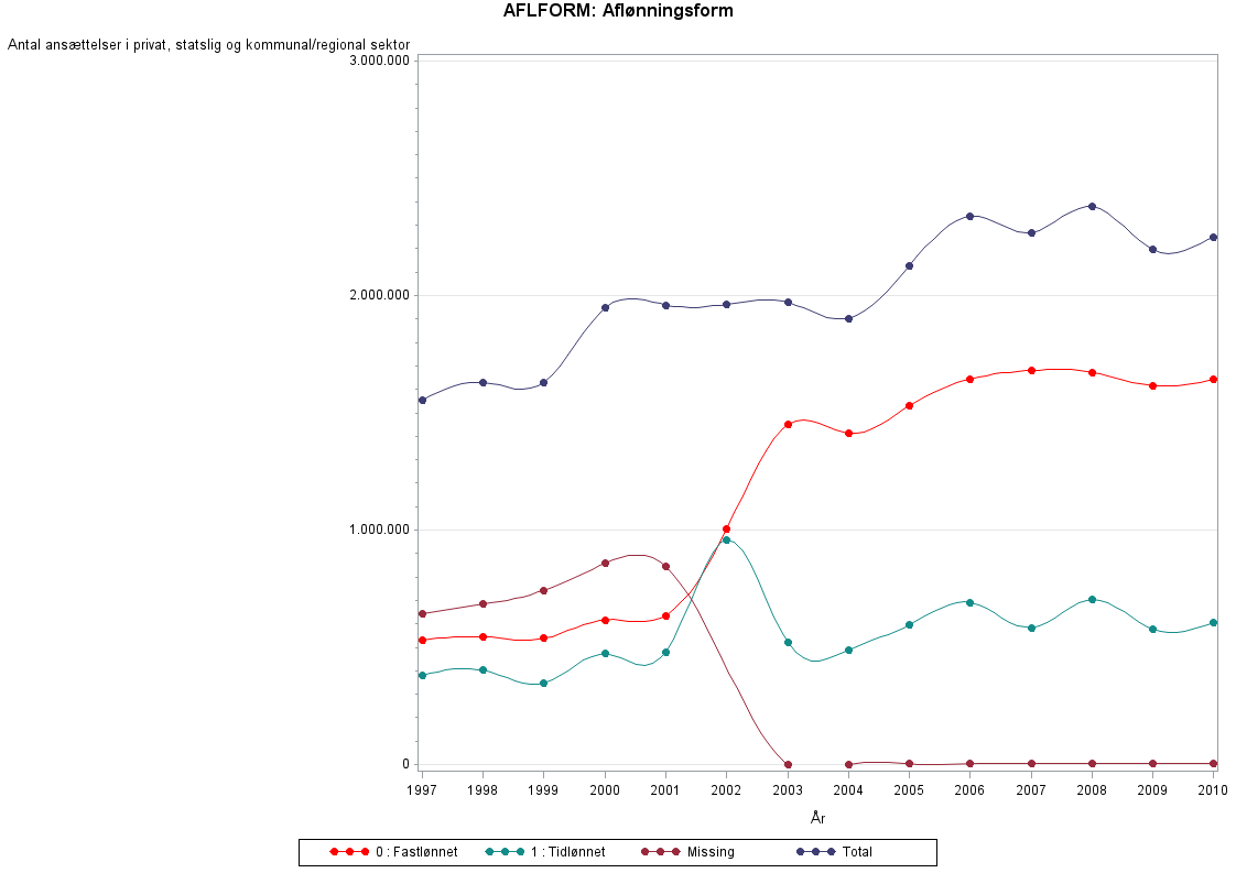 For perioden 1997-2001 bør man i stedet for Aflform benytte variablen Tmetode, der er defineret for alle sektorer og i indhold svarer til Aflform efter 2002.