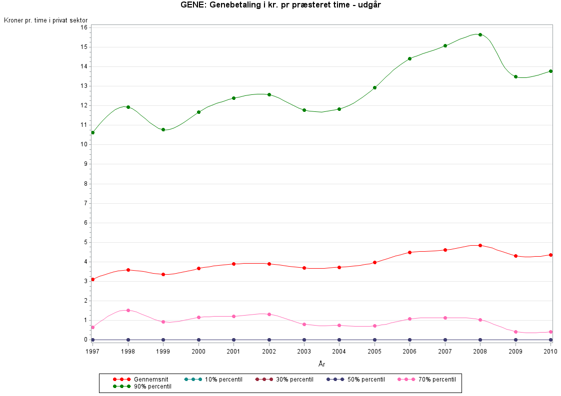 Genebetaling pr. præsteret time - udgårI 2009 blev GENE opsplittet i GENE_PRAE og OVERTID_PRAE i LONN registret. Variablen GENE findes dog i det gamle LON register indtil 2010.
