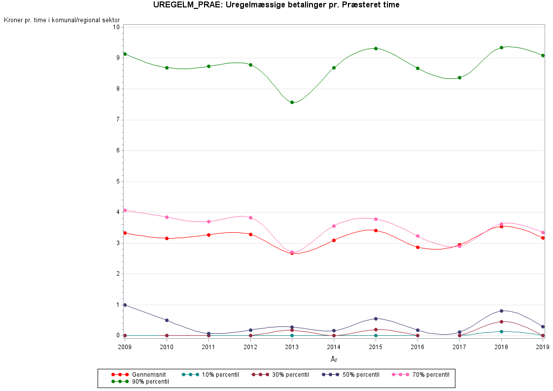 Uregelmæssige betalinger pr. præsteret time i kr.Uregelmæssige betalinger hed før 2009 UREGLM og blev ikke opgjort på timebasis men derimod på årsbasis. UREGLM findes i det gamle LON register frem til år 2010, mens UREGELM_PRAE findes i LONN registret fra år 2009.