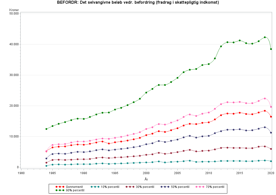 Før 1984 indberettedes befordringsfradraget ikke særskilt i slutligningsregisteret, men indgik i en sum sammen med udgifter til arbejdsløshedsforsikring og fagligt kontingent samt bl.a. fradrag for overarbejde, smudstillæg og udearbejde.1984 til 1993 består befordringsfradraget af udgifter til befordring mellem hjem og arbejde efter nærmere specificerede regler, samt udgifter til befordring mellem skiftende arbejdssteder.