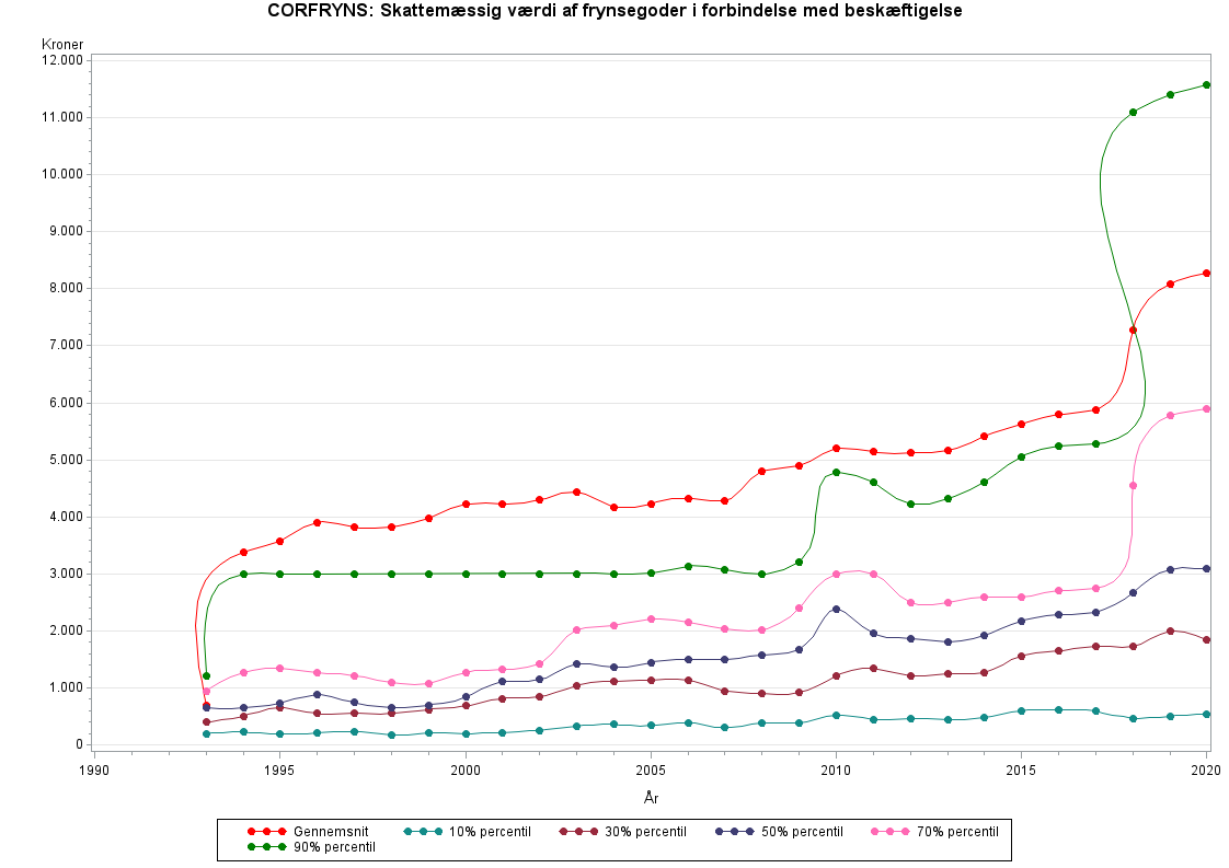 Kilden til CORFRYNS er arbejdsgivernes indberetning til SKAT af den skattemæssige værdi af frynsegoderne. GRUPPELIV er i de fleste tilfælde indberettet af pensionsselskaberne (gruppelivsdel af beløb indbetalt til arbejdsgiveradministreret pensionsordning) og kun i enkelte tilfælde af arbejdsgiveren.