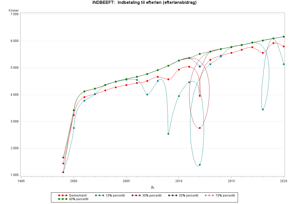 2001 er variablen inkl. bidrag til fleksydelsesordningen. Fra 1. juli 2001 kan personer visiteret til fleksjob (job med løntilskud fra kommunen) få en efterlønslignende ydelse mod betaling af et bidrag svarende til efterlønsbidraget.