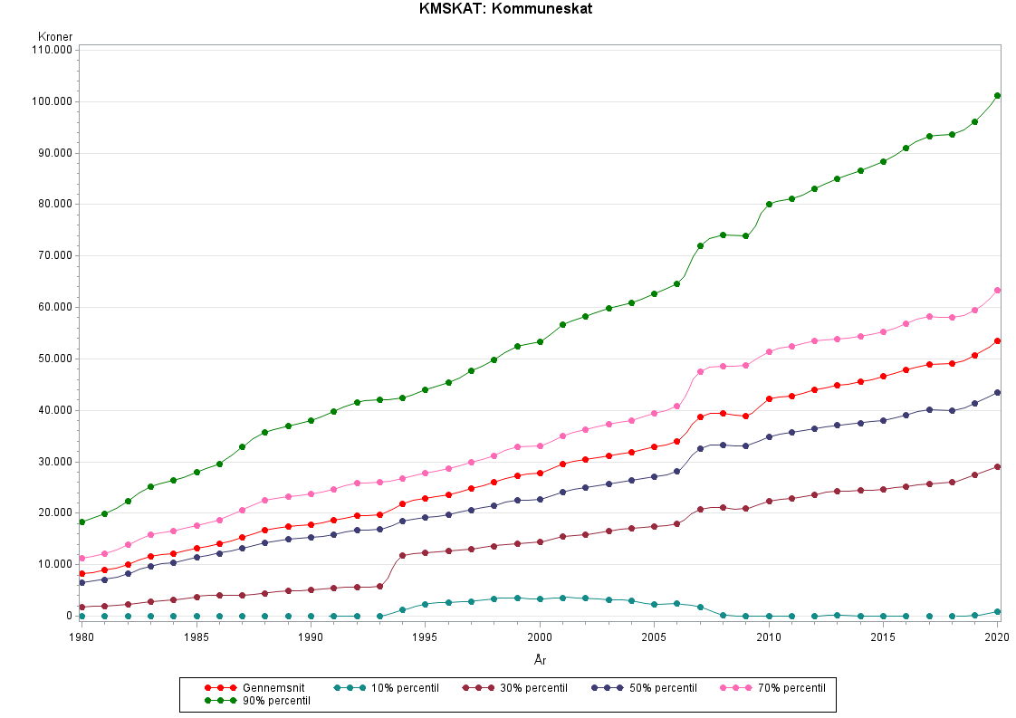 Skatteprocentsatsen varierer fra kommune til kommune og fra år til år.