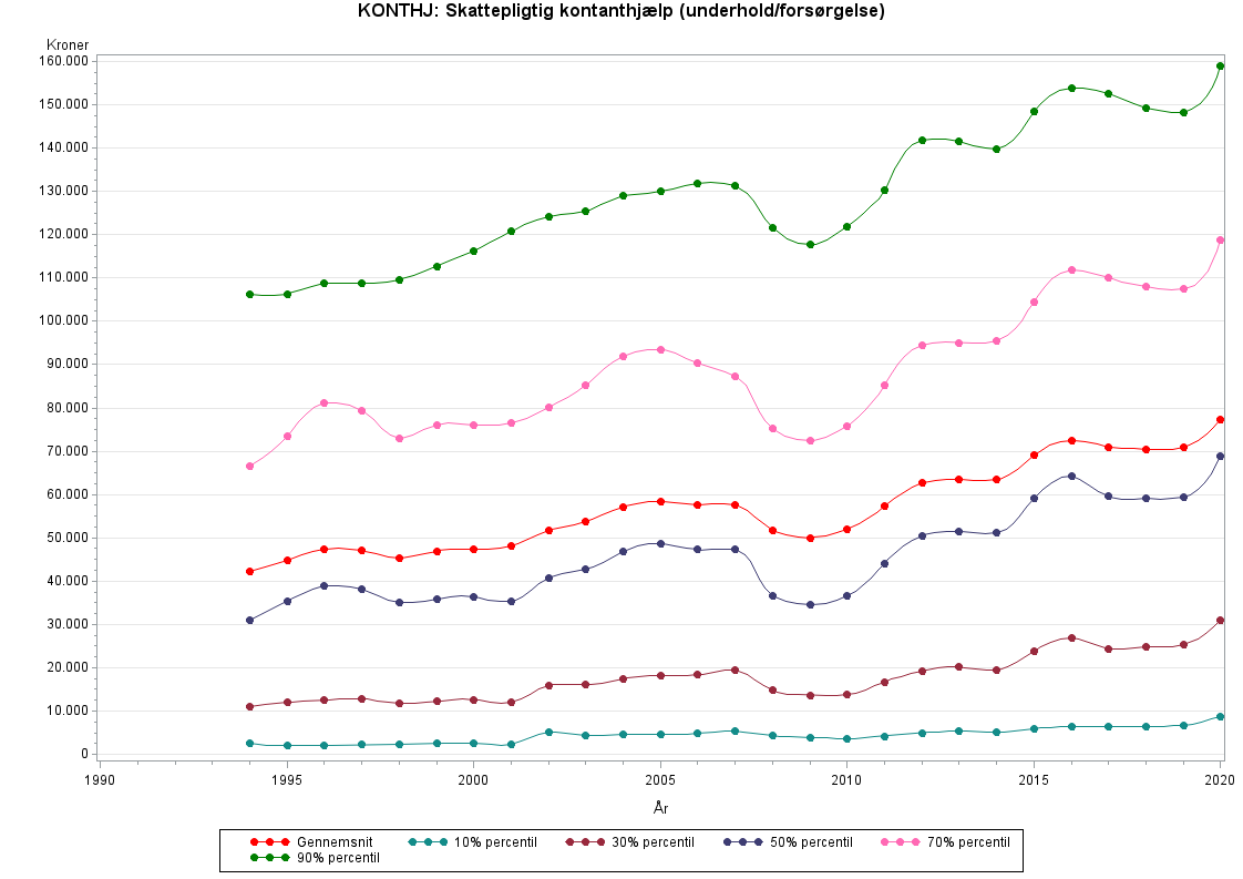 Før 1994 ligger kontanthjælp til forsørgelse i variablen KONT_GL (kontanthjælpsydelser 1980-1993).