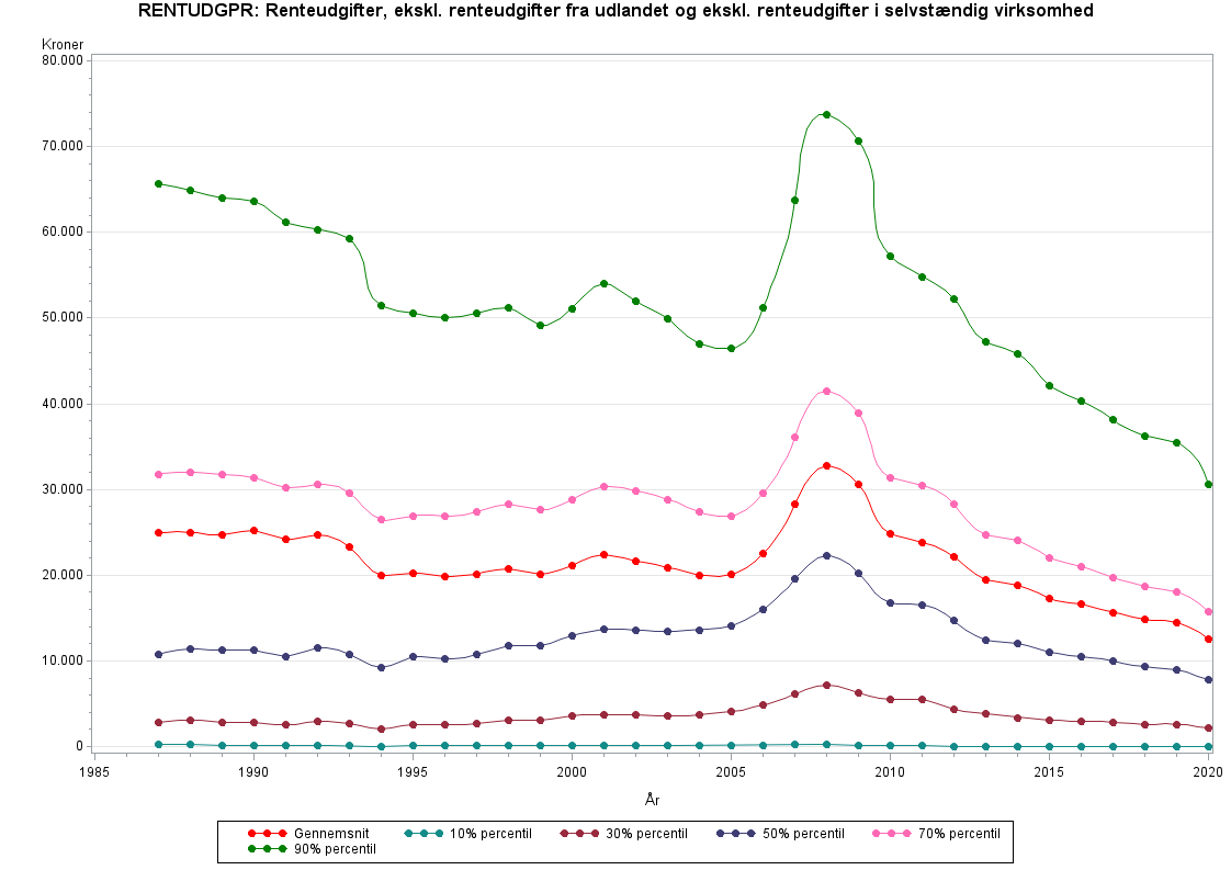 Fradragsberettigede renteudgifter, ekskl. renteudgifter fra udlandet og ekskl. renteudgifter i selvstændig virksomhed