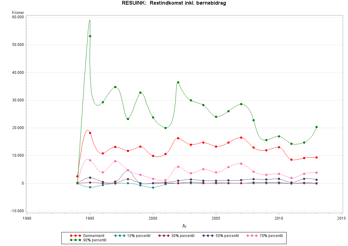 - modtaget børnebidrag (størstedelen af børnebidraget skattefrit og indgår ikke i opgørelserne; den skattefri del er dog fra 2002 modelberegnet af Danmarks Statistik og lagt til RESUINK)