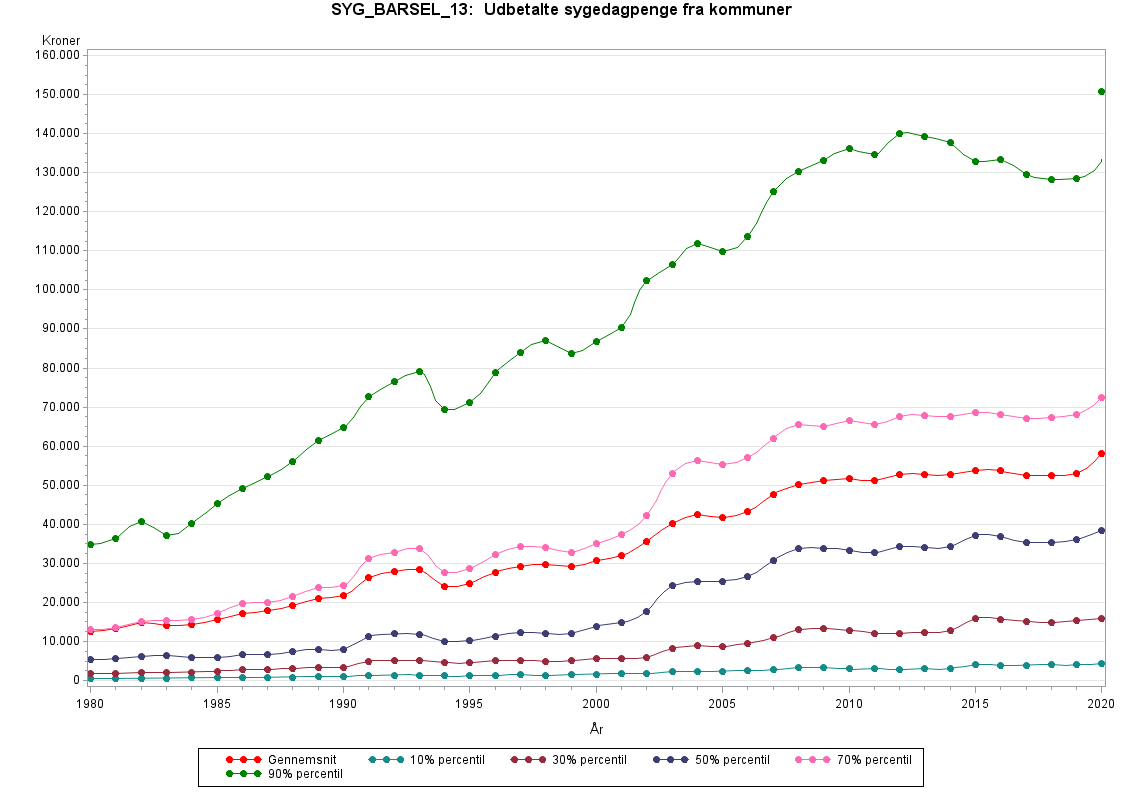 Udbetalte barsels- og sygedagpenge fra de offentlige kasser inkl. udbetalinger til selvstændigt erhvervsdrivende.