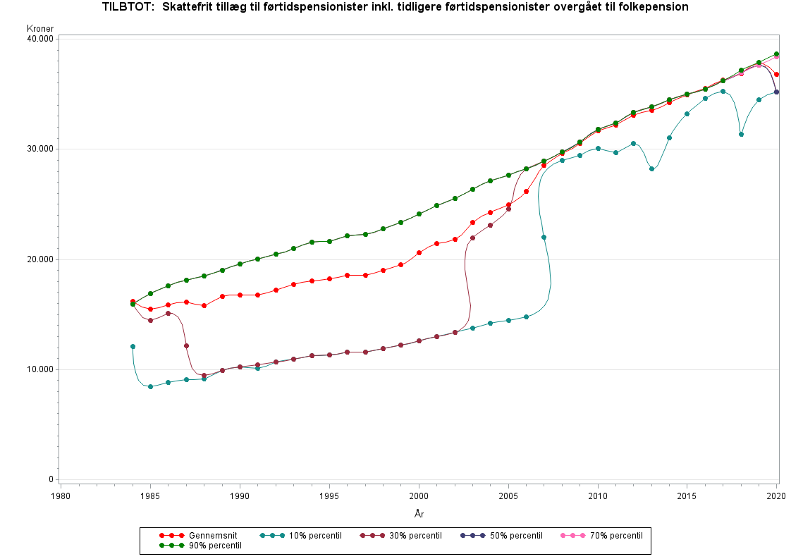 De skattefrie tillæg omfatter følgende ydelser: Førtidsbeløb, invaliditetsbeløb/tillæg, bistandsplejetillæg,invaliditetsydelse og fra 2007 særligt tillæg. Selv om folkepensionsalderen er nedsat til 65 år, fortsætter førtidsbeløb og invaliditetsbeløb, til personen bliver 67 år. For detaljeret oplysning om satser, se diverse årgange publikationen "Sociale ydelser". Variablen TILBTOT haves først fra 1984, men tillæg til førtidspensionister (før 1984 invalidepensionister) eksisterede også før 1984. Der mangler beløb vedr. særligt tillæg for pensionister på almindelig og forhøjet almindelig førtidspension i 2006. Tillægget er skattefrit også efter reformen i 1994, hvor den almindelige folke-og førtidspension hæves og gøres skattepligtig. Fra 1. januar 2003 ændres reglerne for nye førtidspensionister. Fra 1. januar 2003 hæves tillægget og bliver skattepligtig, hvilket betyder, at variablen TILBTOT har værdien 0 for personer, der søgt om førtidspension efter udgangen af 2002 (her er beløbet en del af den almindelige folke-og førtidspension); se også variablen QPENSNY. Det skattefrie tillæg bevares for personer, som har søgt om førtidspension før 1. januar 2003 og fået tildelt førtidspension. Fra 2020 indregnes den skattefrie seniorpræmieordning for pensionister, der stadig arbejder, og i 2023 er desuden indregnet inflationshjælp til folkepensionister, der modtager ældrecheck..