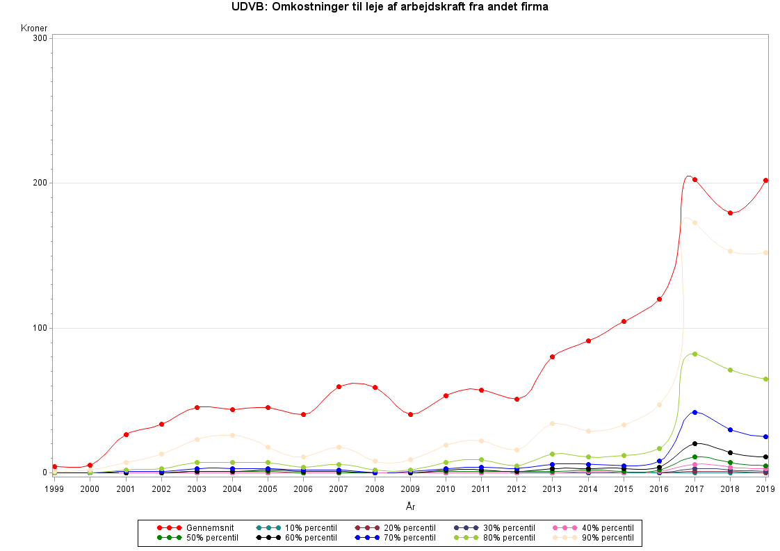 De pågældende personer arbejder i virksomheden, men aflønnes af en anden virksomhed, fx et vikarbureau eller et andet firma under samme koncern. Værdi er angivet i 1.000 kr.Detaljeret beskrivelse