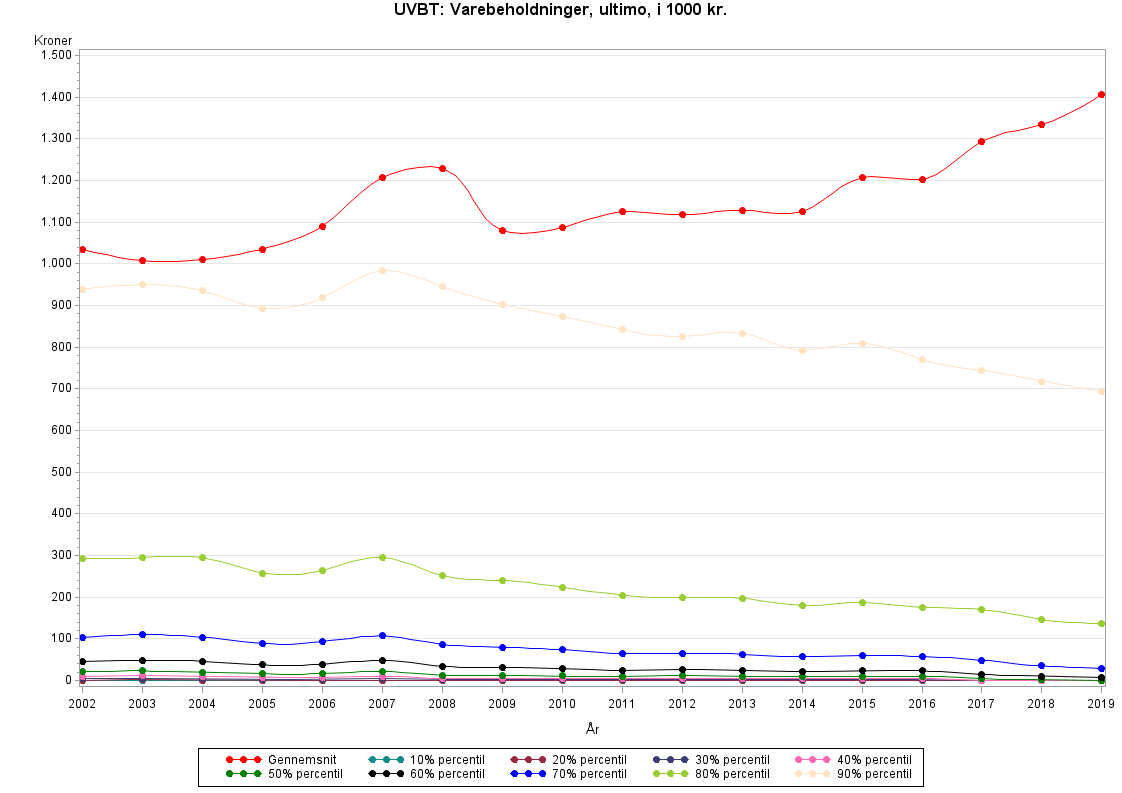 Værdien af varebeholdningen ved regnskabsårets slutning. Værdi er angivet i 1.000 kr.Detaljeret beskrivelse