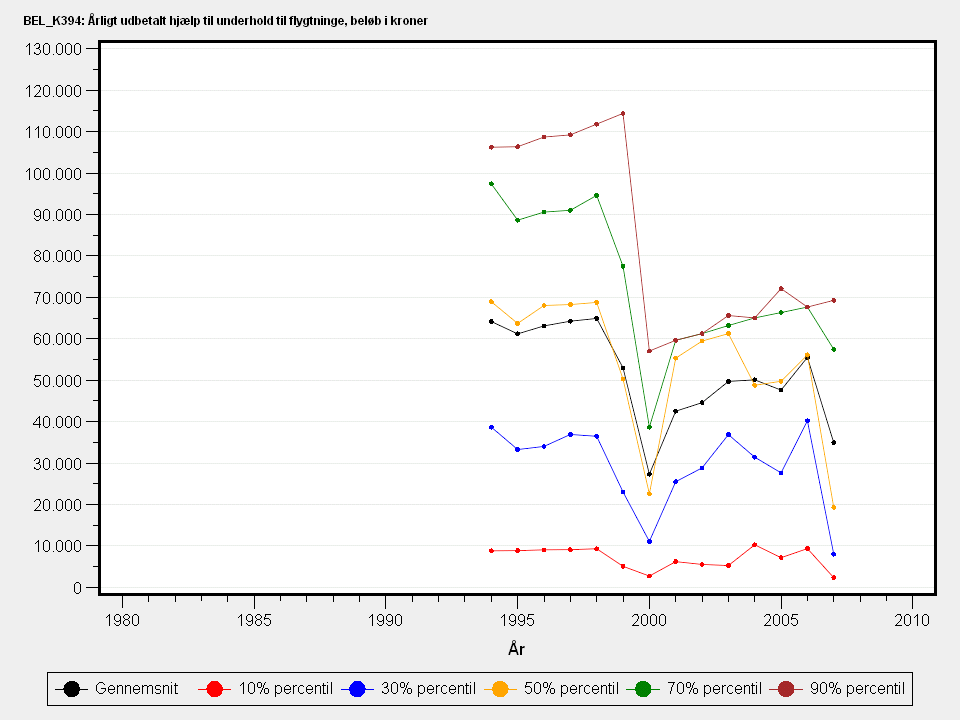 Fra og med 1999 indgår kun ydelser med 100 pct. statsrefusion under BEL_K394, mens andre ydelser til flygtninge indgår under øvrige ydelsesarter på linje med ydelser til andre end flygtninge.