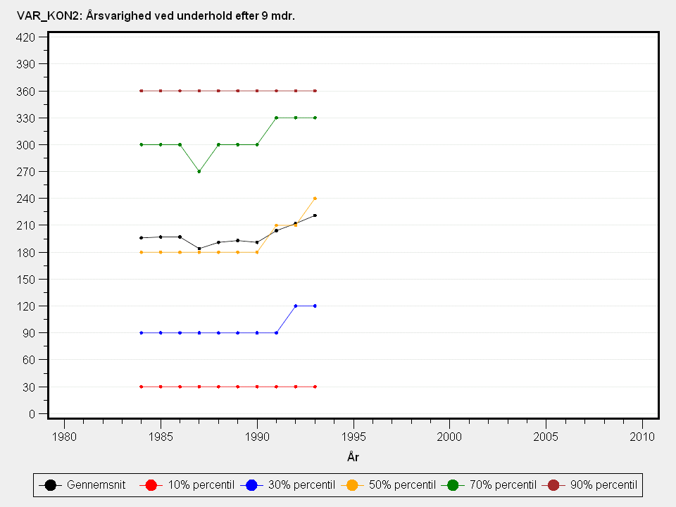 Årsvarighed af underhold/forsørgelse efter 9 mdr. Varigheden måles i dage i måneden.Detaljeret beskrivelse