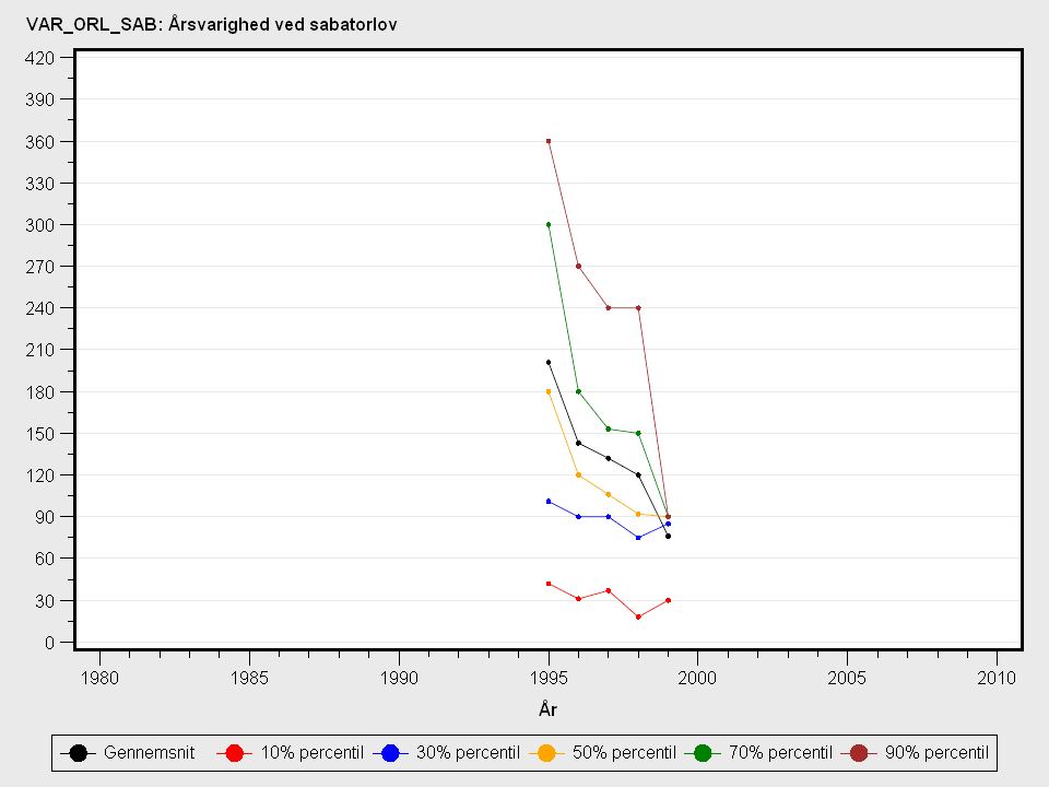 Årsvarighed af sabbatorlov. Varigheden måles i dage i måneden.Detaljeret beskrivelse