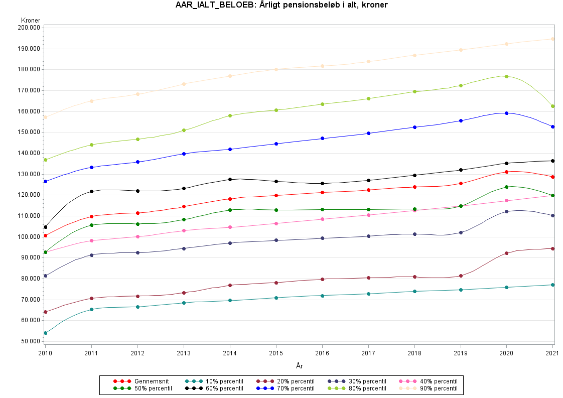 - FOERTID_BELOEB: Førtidsbeløb til alle førtidspensionister med forhøjet almindelig førtidspension samt til disse førtidspensionister de to første år som folkepensionist (som 65- og 66-årig).